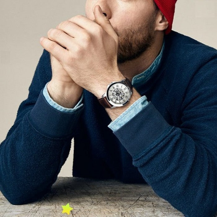 Fossil Grant Automatic Beige Skeleton Dial Men's Watch ME3099
