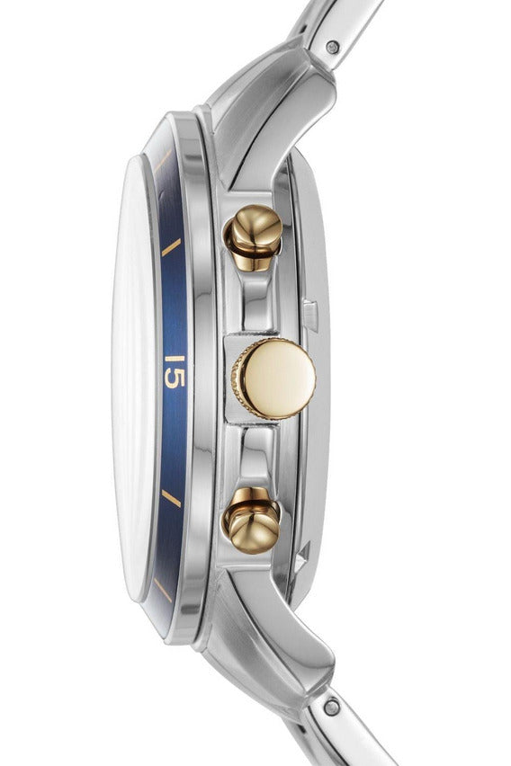 Fossil Grant Sport ME3141 is a super handsome Gents watch . Material of the case is Two-tone steel/gold plate, which stands for a high quality of the item and the Skeleton dial gives the watch that unique look.