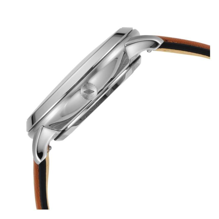 This 44 mm Neutra features a blue satin see-through skeleton dial with Roman numeral and stick indices, automatic movement and a luggage leather strap.