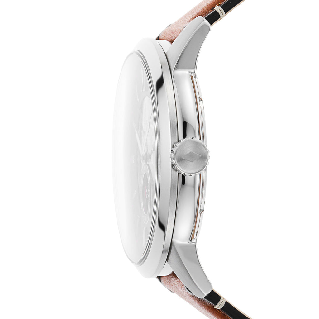 • Stainless steel case with blue dial; genuine luggage brown leather band with adjustable buckle closure; interchangeable with all 24mm Fossil watch straps