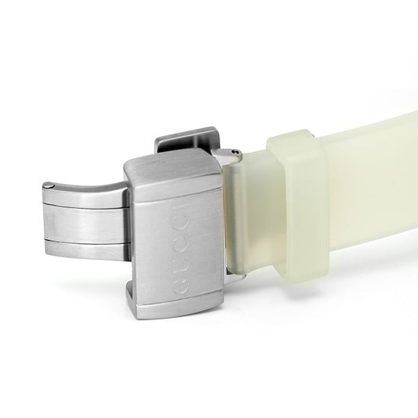 Get ready to make a statement with the Gucci Dive Automatic Watch. Designed for both men and women, this timepiece features a sleek white dial and comfortable white rubber strap. With automatic movement, you'll always be on time in style. Dive in and elevate your look with this luxurious and versatile watch.