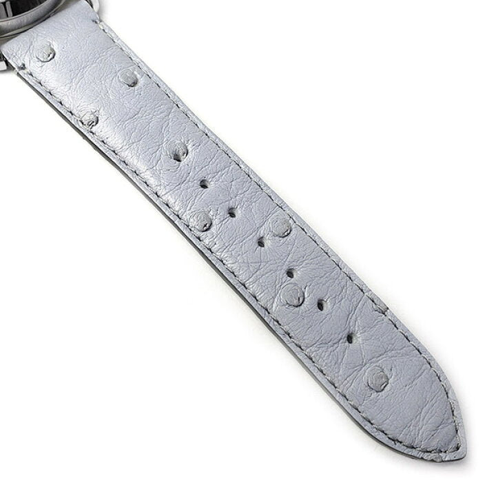 Transparent Mother of Pearl (Kingsnake) dial enhanced by silver-tone hands. Silver-tone stainless steel case with a powder blue (ostrich) leather band. Automatic movement. 50 meters / 165 feet water resistance. Fixed bezel. Scratch Resistant Sapphire crystal. Transparent caseback. Tang clasp. Pull / Push crown. Case size 38 mm x 8 mm. Band 20 mm x long. Gucci YA1264113 G-Timeless Watch.