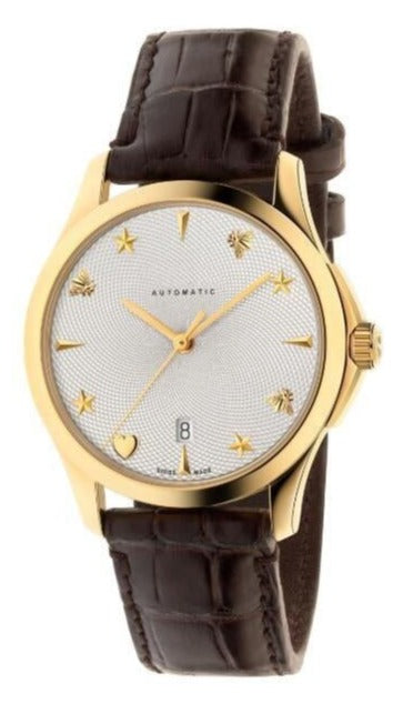 Gucci G Timeless Automatic Silver Dial Brown Leather Strap Unisex Watch - YA126467