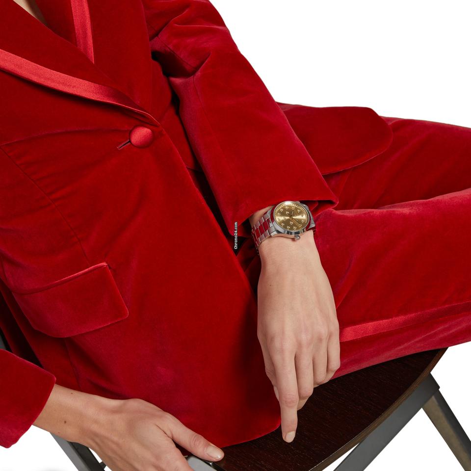 - 42mm steel case, yellow gold sunbrushed dial with bees, steel bracelet