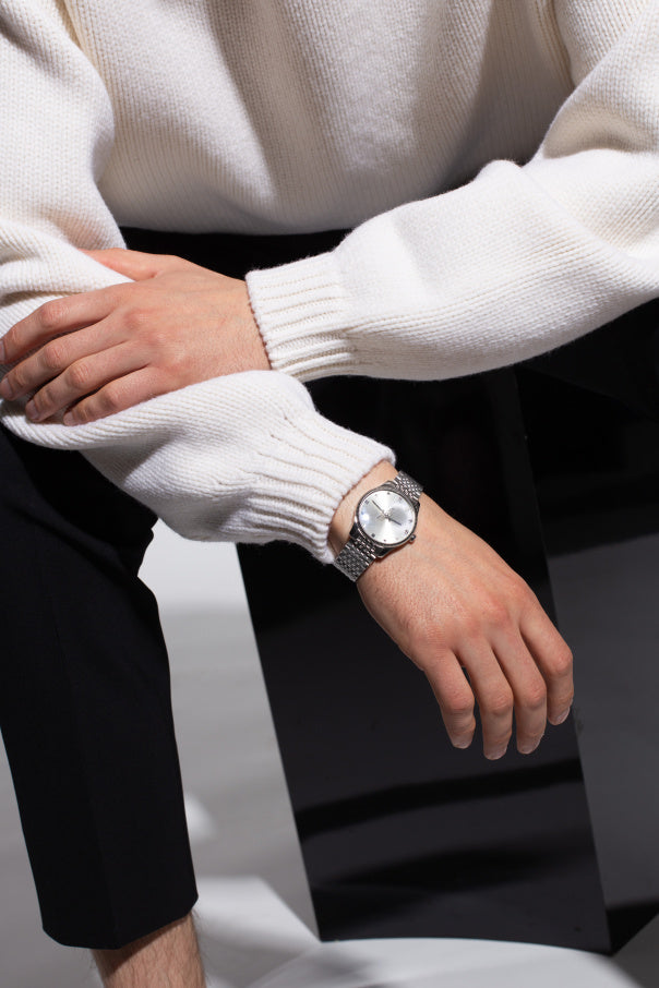 Part of the G-Timeless collection, this classic watch in steel is crafted with a traditional sensibility, juxtaposed with a sunbrushed dial and bees and stars at the indexes. The bee motif is specially designed to work as the seconds hand. Steel case, silver sunbrushed dial with bee as seconds hand, 9 links steel bracelet