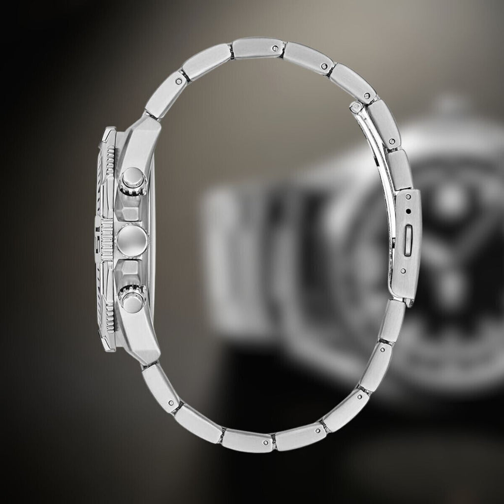 Guess Commander Chronograph Black Dial Silver Steel Strap Watch for Men - GW0056G1 Buy Now By Guess