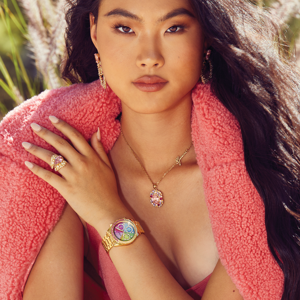 • Dial: Multicolor rainbow gradient dial with gold-tone Roman numeral markers