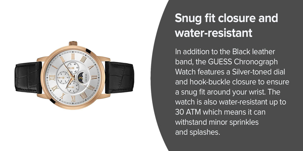 Guess Delancy Quartz Silver Dial Black Leather Strap Watch For Men - W0870G2