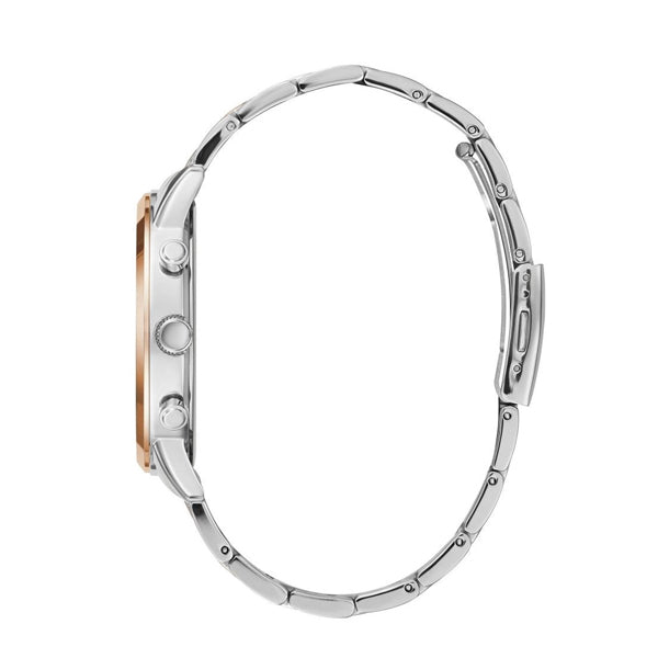 Guess Mens Two Tone Stainless Steel with Navy Blue Dial. It is shipped with its original box and official warranty card.