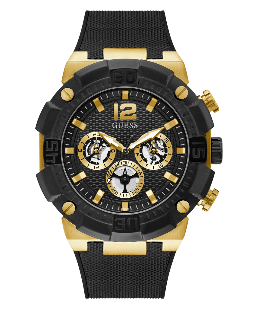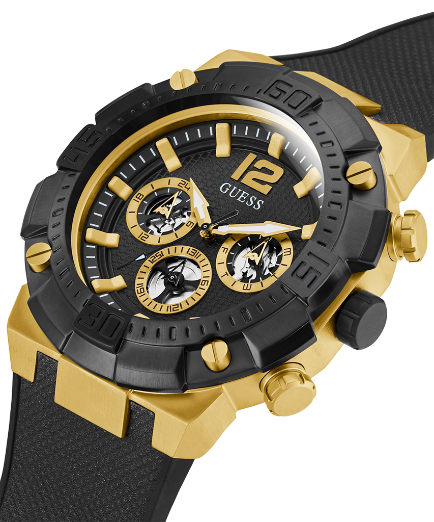 This bold men's timepiece boasts a 50 mm case size and multi-function details that outperform the competition.