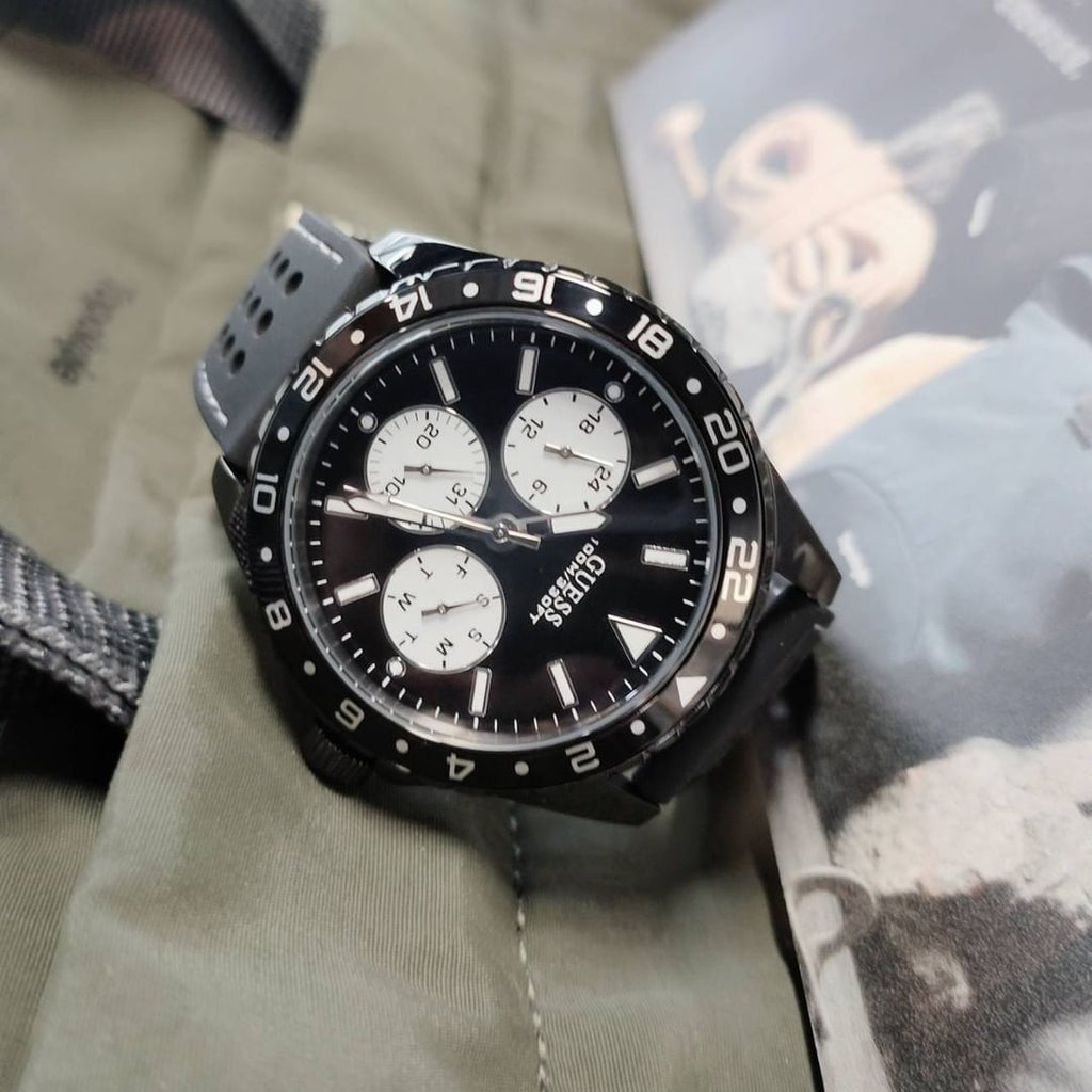 Guess Odyssey Quartz Black Dial Black Silicone Strap Watch For Men - W1108G3
