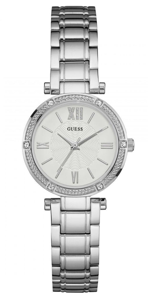Guess Park Ave White Dial Silver Steel Strap Watch for Women - W0767L1
