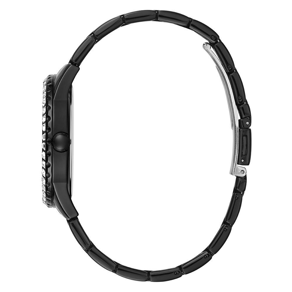 Guess Dress Sparkler GW0111L4 is an interesting women's model in which the black is broken by shiny elements. The ring of the round case and the analog dial are set with crystals. Both the case and the bracelet are made of high-quality stainless steel. The dial is additionally decorated with a solar cut and covered with mineral glass. Correct operation is ensured by a battery-powered quartz mechanism. The product is waterproof to 30 meters and the manufacturer's warranty is 2 years.
