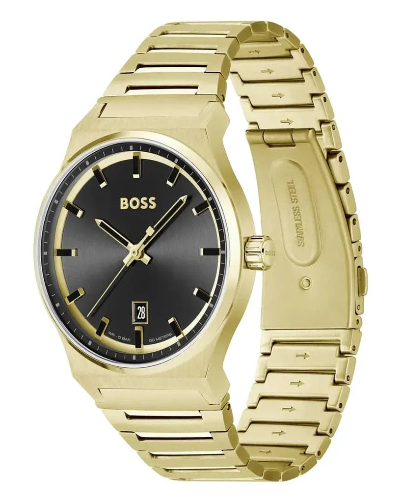 Hugo Boss Candor Black Dial Gold Steel Strap Watch for Men - 1514077 Buy Now By Hugo Boss