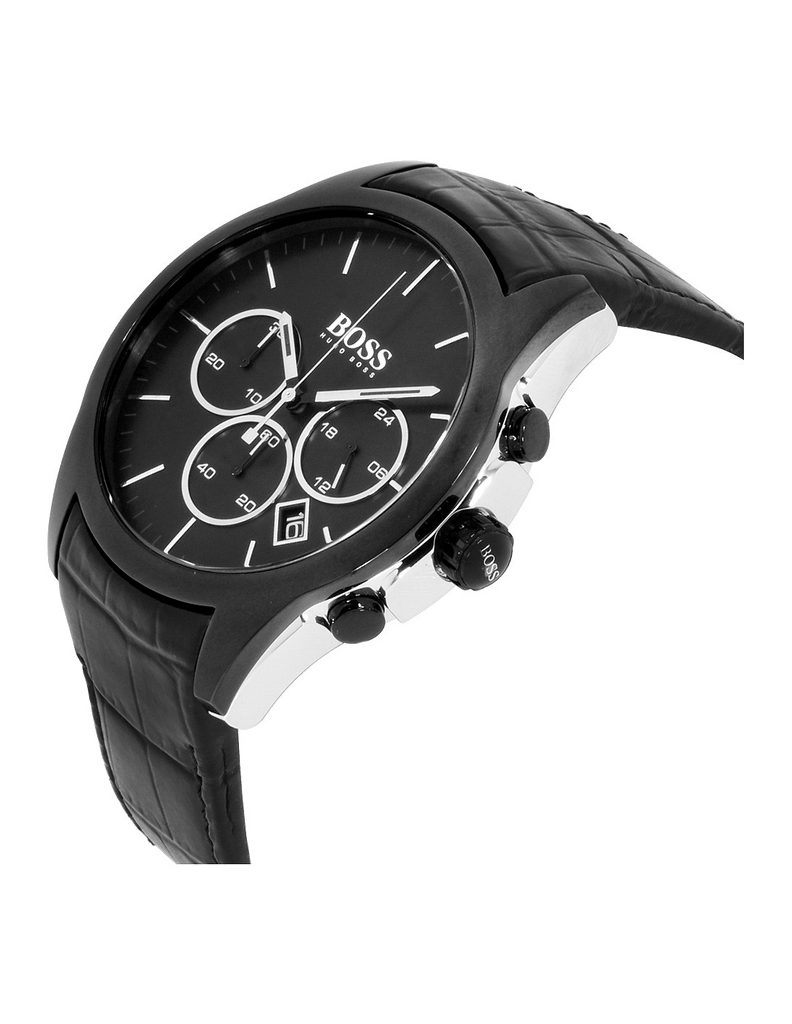 Hugo Boss Onyx Black Dial Black Leather Strap Watch for Men - 1513367