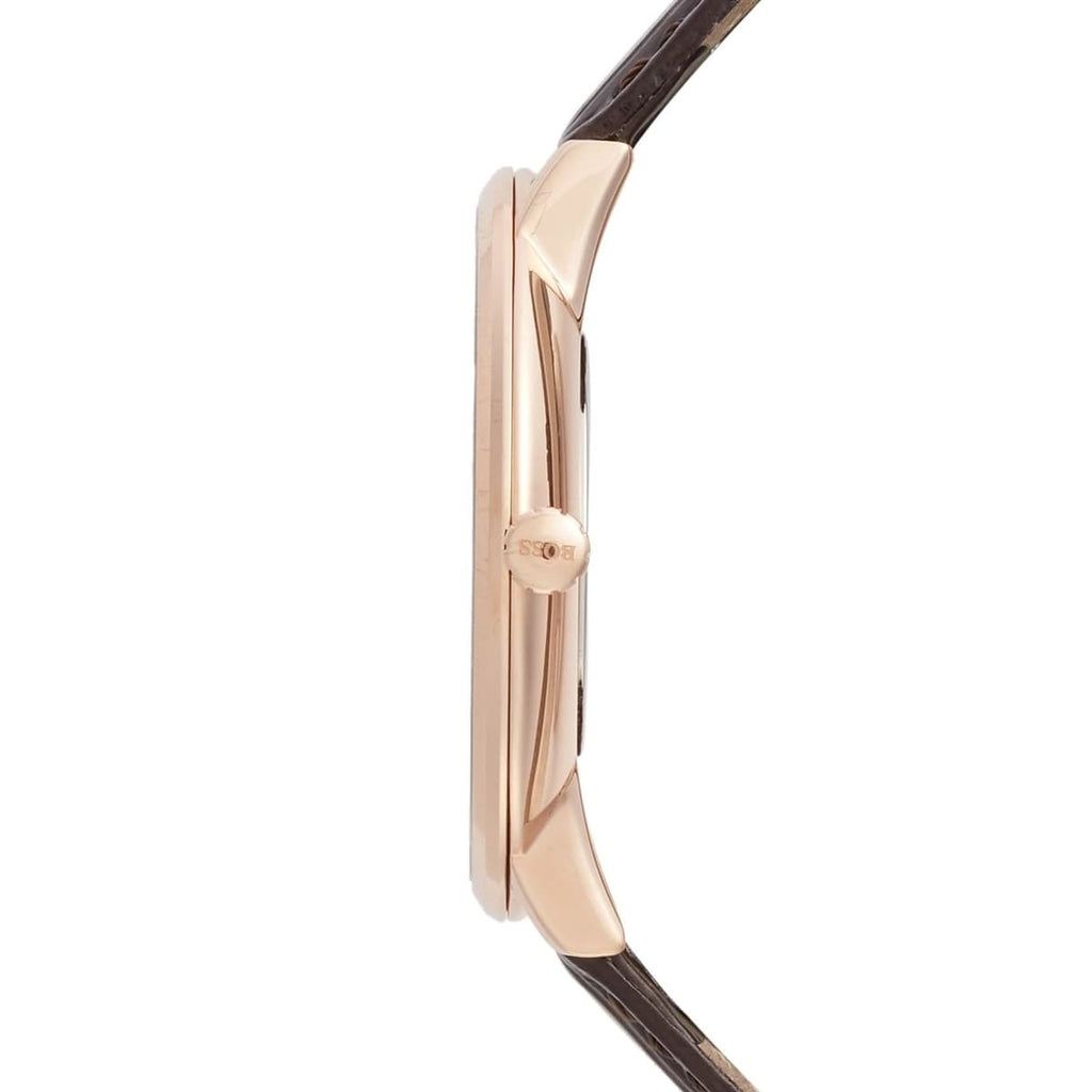 This BOSS watch offers a daywear iteration of elegant style with a deep blue dial and croc-embossed leather strap. Copper-tone hardware offsets the stunning piece.