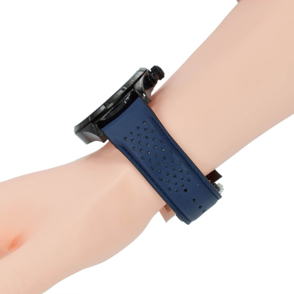 Experience luxury and style with Hugo Boss Grand Prix Chronograph Black Dial Blue Leather Strap Watch for Men. This sleek timepiece features a precise chronograph function, bold blue leather strap, and a striking black dial. Perfect for the modern man who values both fashion and functionality.