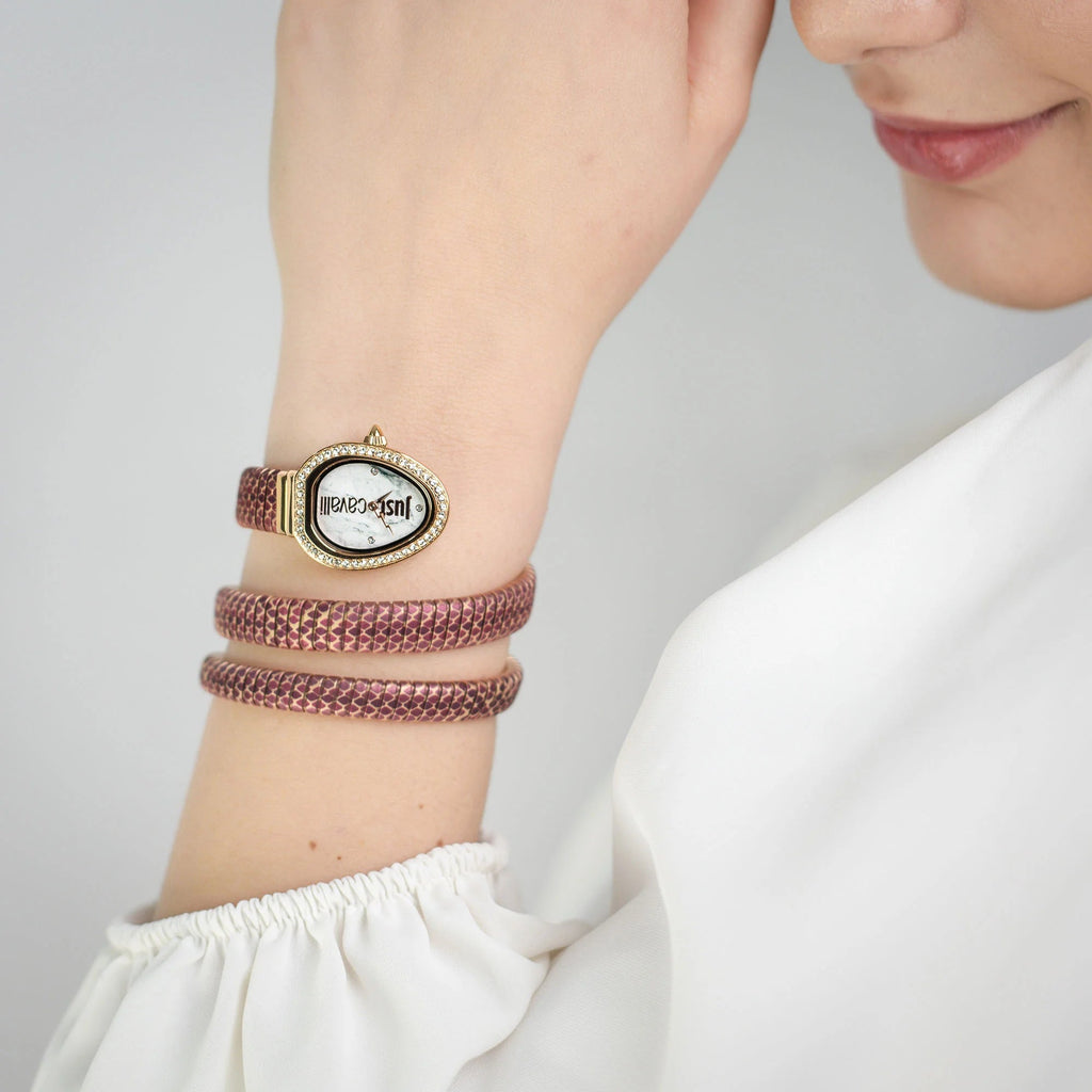 Just Cavalli Glam Snake White Dial Multicolor Steel Strap Watch for Women - JC1L163M0275