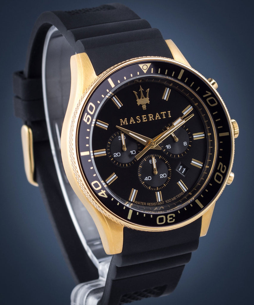 Maserati SFIDA Chronograph Black Dial Rubber Strap Watch For Men - R8871640001