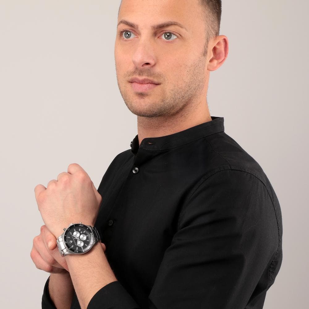 Our Maserati Sfida Chronograph is just what you need to get through the day. The chronograph tracks your progress so you beat any record that you set for yourself. An easy to read date window lets you know the day and date no matter where you are, keeping you on time for any moment. Luminous hands make the display easy to read, even at night, and with water resistance up to 100 meters, you can go for a swim without worry. The stainless-steel case and band can be dressed up or down, so you always look your best for every occasion. Our Sfida watch designed after the sportiest elements of Maserati cars, making it perfect for any gentleman to wear with any formal or casual outfit.