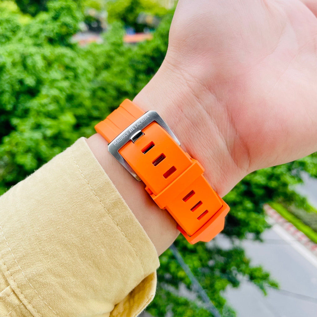 The 42mm diameter stainless steel case will look good on most wrists, the watch of course also features sapphire crystal to protect the dial. The stainless steel bracelet feels supple on the wrist ensuring a comfortable wearing experience. The watch also comes with a high quality rubber watch strap.