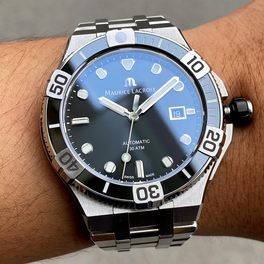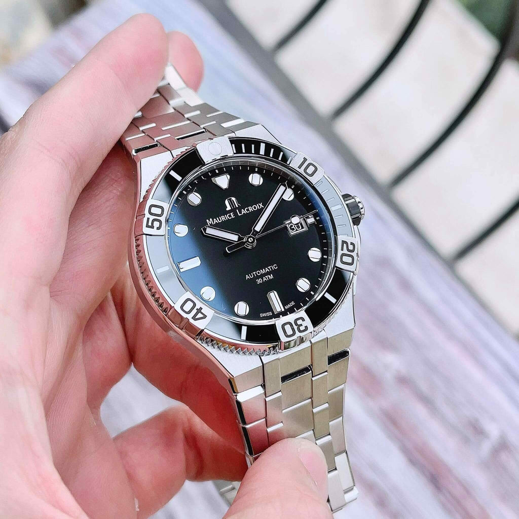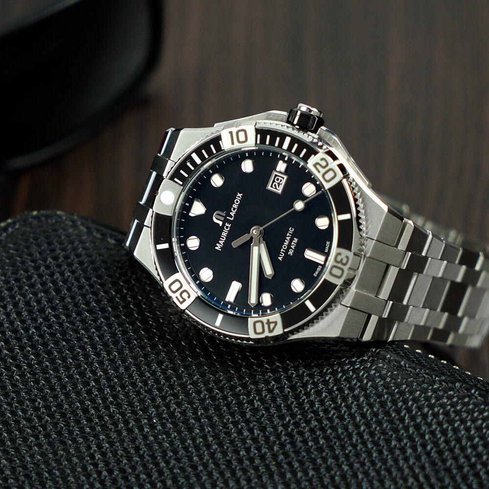 Maurice Lacroix Aikon Venturer Black Dial Silver Steel Strap Watch for Men - AI6058-SS002-330-1