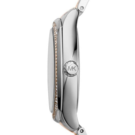 Michael Kors Bryn MK6136 is an amazing and interesting Ladies watch . Material of the case is Two-tone steel/gold plate and the Blue dial gives the watch that unique look. 50 metres water resistance will protect the watch and allows it to be submerged in water for periods, so can be used for swimming and fishing. It is not recommended for high impact water sports.