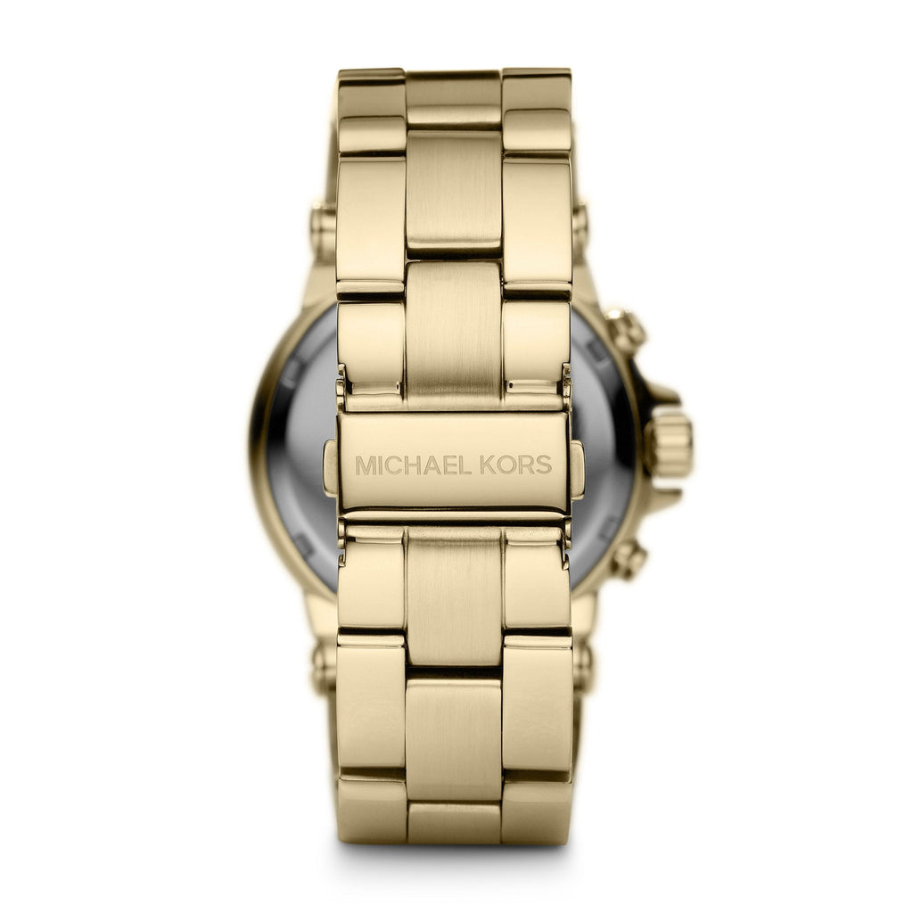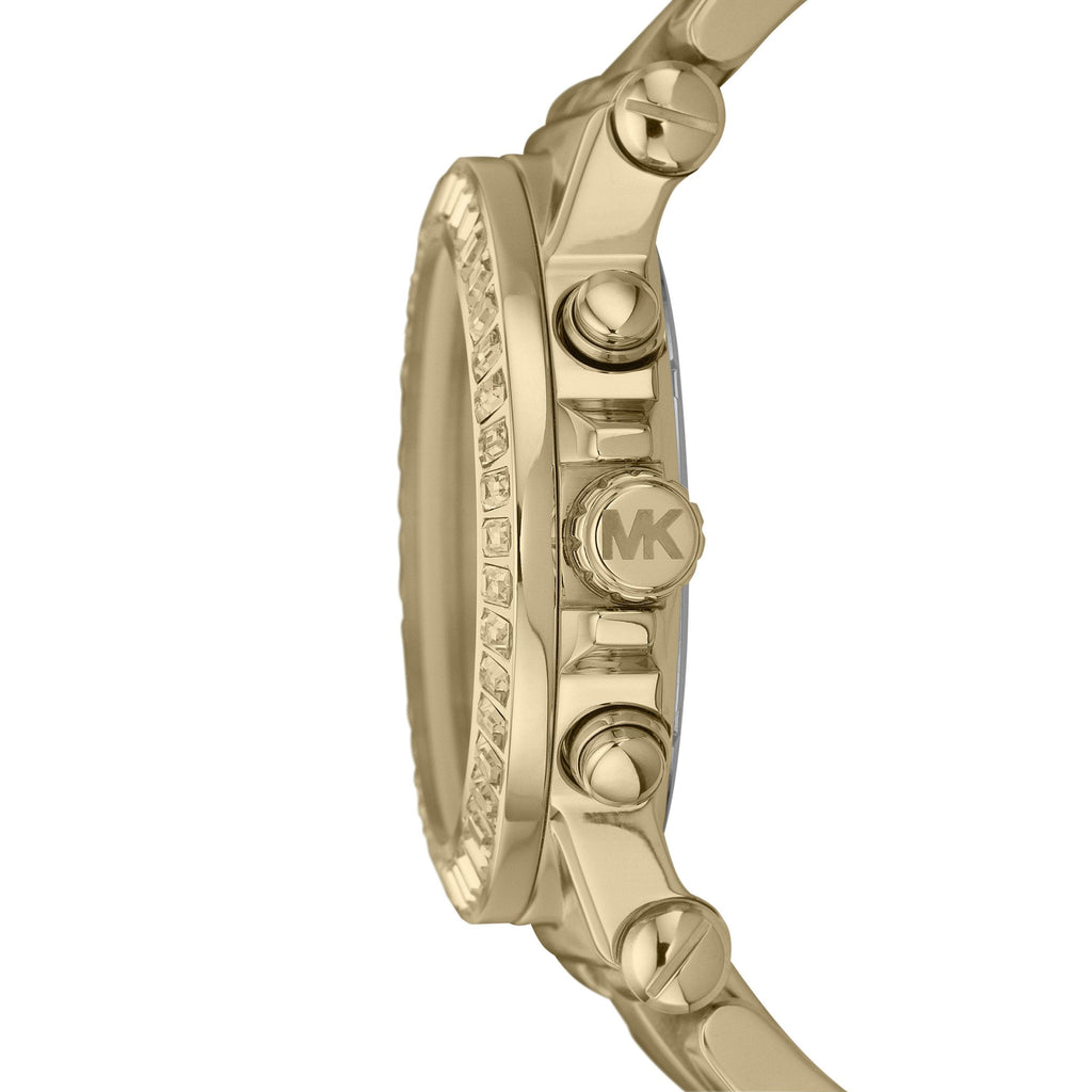 This analogue watch from Michael Kors has a stainless steel strap in gold, complemented by a gold dial. Please note, the dial for the Michael Kors MK5861 ladies' watch has 43 mm in diameter.