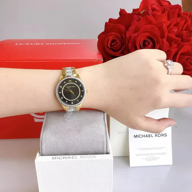 Michael Kors Lauryn Crystal Pave Black Dial Two Tone Steel Strap Watch For Women - MK4403