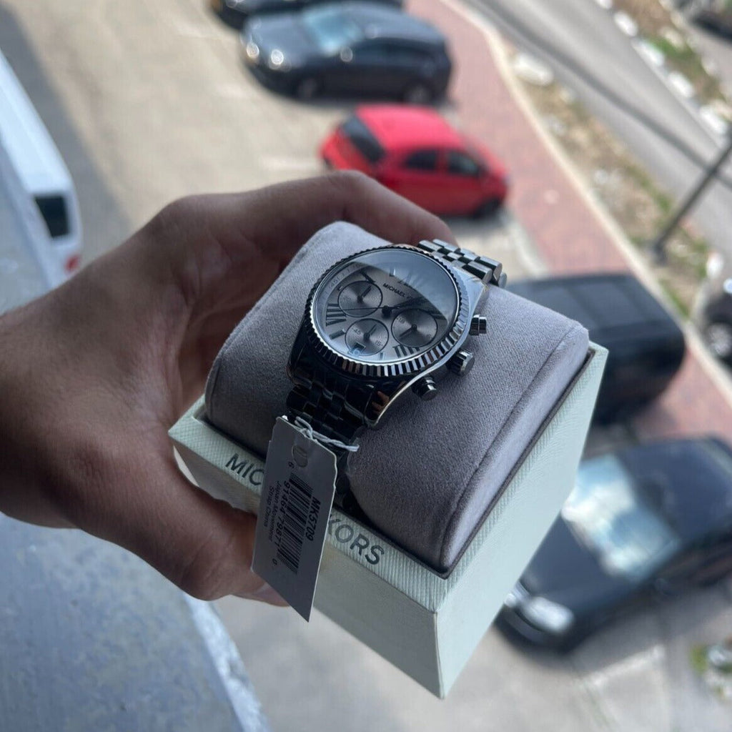 This Michael Kors Lexington MK5709 Women's Watch boasts a high polished stainless steel case and bracelet, as well as a grey dial.