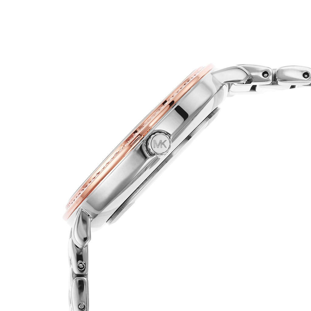 This is the fabulous Michael Kors Pyper Two Tone Women's Watch MK4667. This simple and elegant two tone watch features crystals throughout the dial.