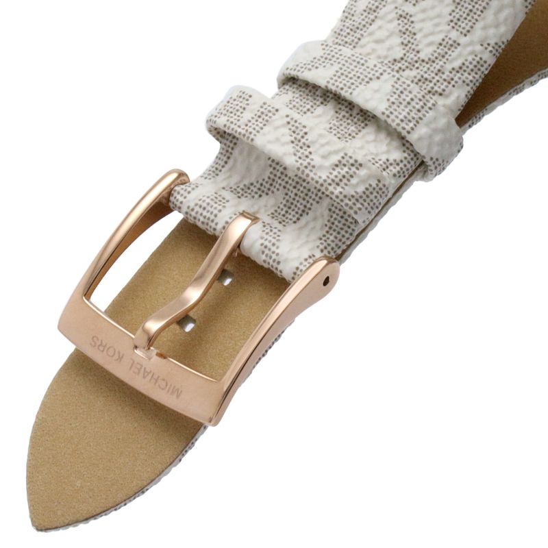 Michael Kors Runway Quartz Rose Gold Dial White Leather Strap Watch For Women - MK6980
