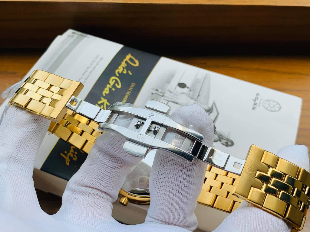 Men's Museum Classic watch, 40 mm yellow gold PVD-finished stainless steel case, black Museum dial with gold-toned dot and hands, yellow gold PVD-finished stainless steel link bracelet with deployment clasp.