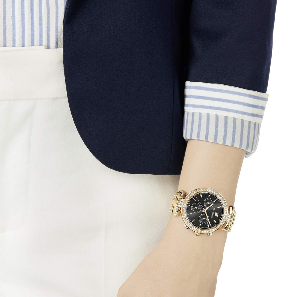 Swarovski Era Journey Chronograph Black Dial Black Leather Strap Watch for Women - 5295320