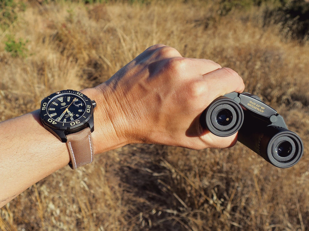 Tag Heuer Aquaracer 300 Calibre 5 Automatic Black Dial Brown Nylon Strap Watch for Men - WAY208C.FC6383