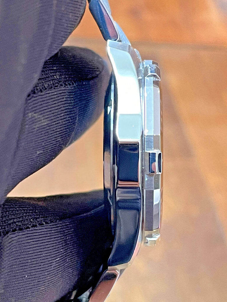 Black Sunburst Dial. Applied Luminous Stainless Steel Stick Indexes. Luminous Stainless Steel Hands. Date Window at 3.