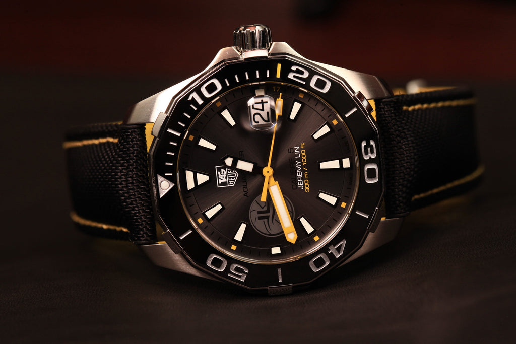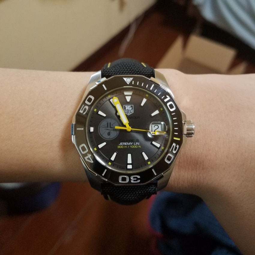 Swiss-made, this bold TAG Heuer Aquaracer is an aesthetic 41 mm watch. This model features a Steel case and a Calibre 5 Automatic movement.