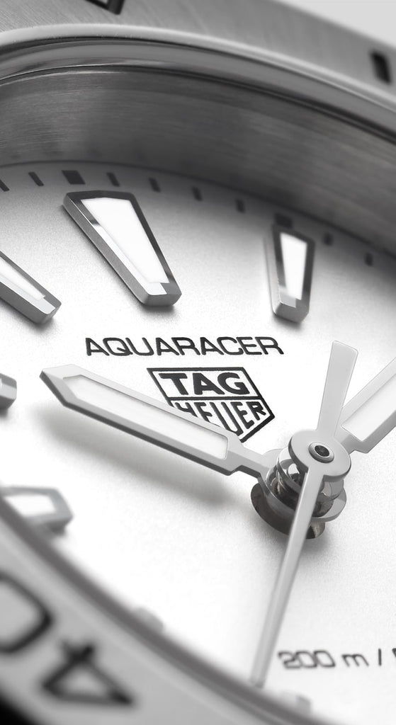 The TAG Heuer Aquaracer is built for everyday use. A true tool watch with versatile style, ready to help you overcome your personal limits. This 30mm model stands out with a shimmering silver dial and unmistakable boldness.
