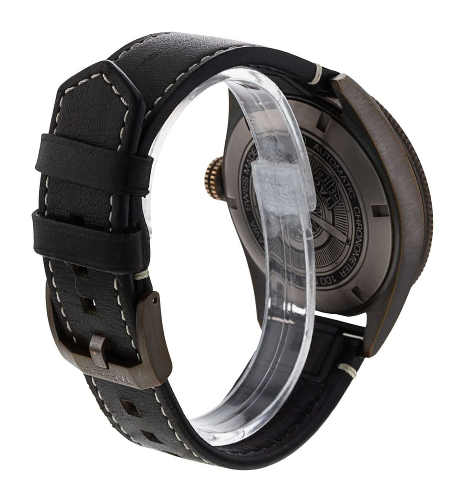 A seriously rugged men’s automatic watch with bronze case and on-trend khaki smoked dial. Inspired by classic explorer’s watches, the design is upgraded by 21st-century materials, including titanium for the case back and black ceramic for the bidirectional turning bezel.
