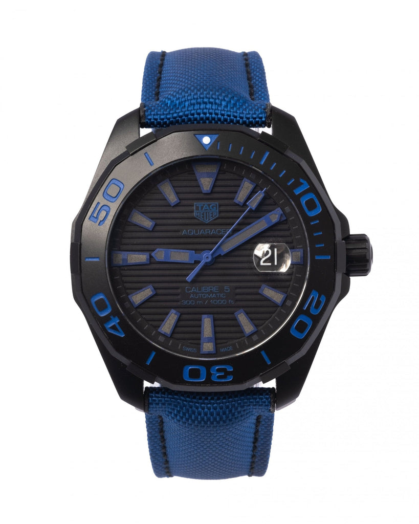 Tag Heuer Aquaracer Calibre 5 Automatic Titanium Blue Dial Blue Nylon Strap Watch for Gents - WAY208B.FC6382