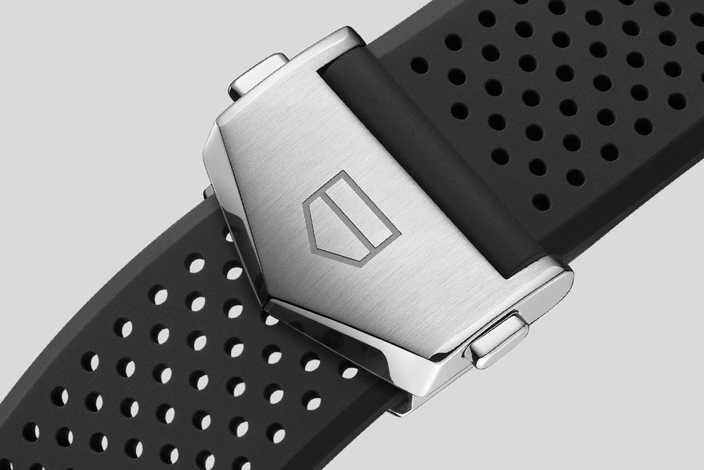 The new perforated rubber strap of this TAG Heuer Carrera adds unstoppable performance and striking luxury to this precision chronograph.