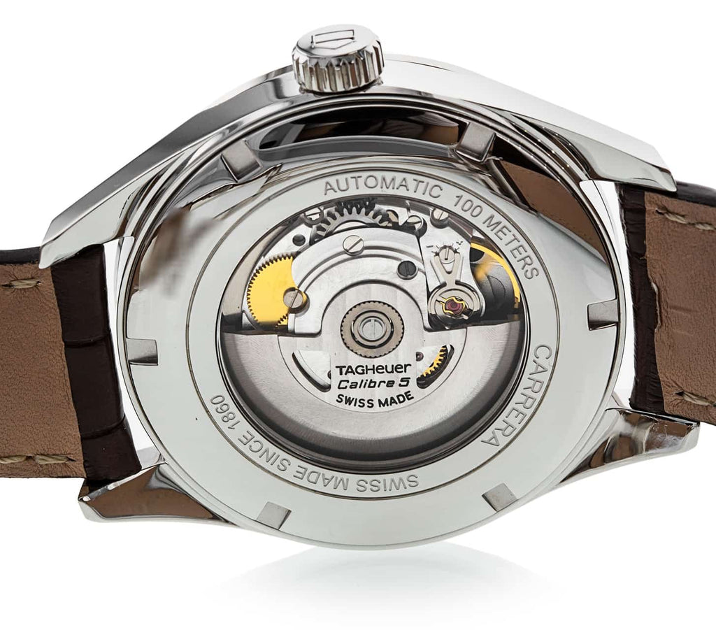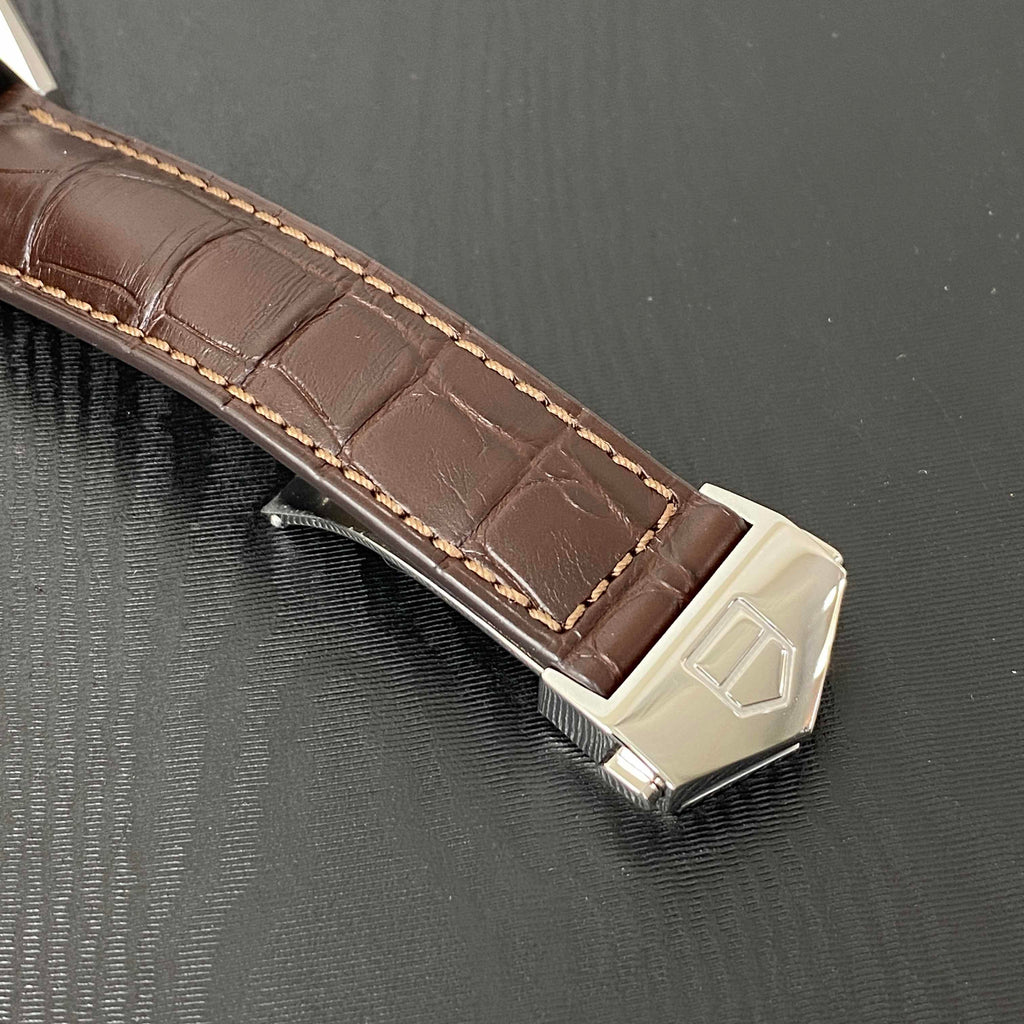 Swiss-made, this bold TAG Heuer Carrera is an aesthetic 41 mm watch. This model features a Steel case and a Calibre 5 Automatic movement.