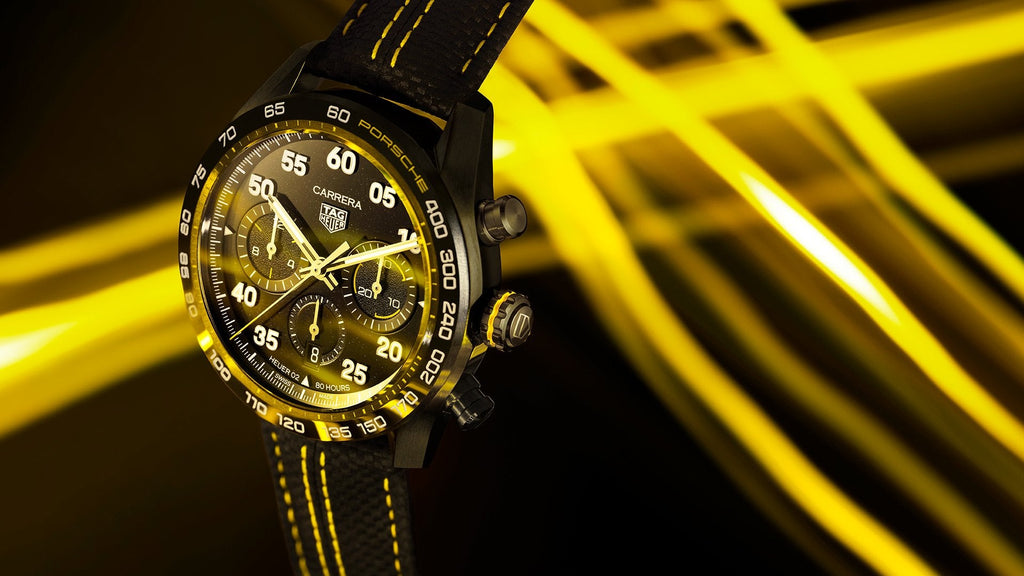 Born from an iconic partnership between two Maisons, the TAG Heuer Carrera Porsche Limited Edition embodies innovation, prestige and striking luxury. With its daring look, the distinctive shiny black dial draws inspiration from Porsche’s distinctive bodywork.