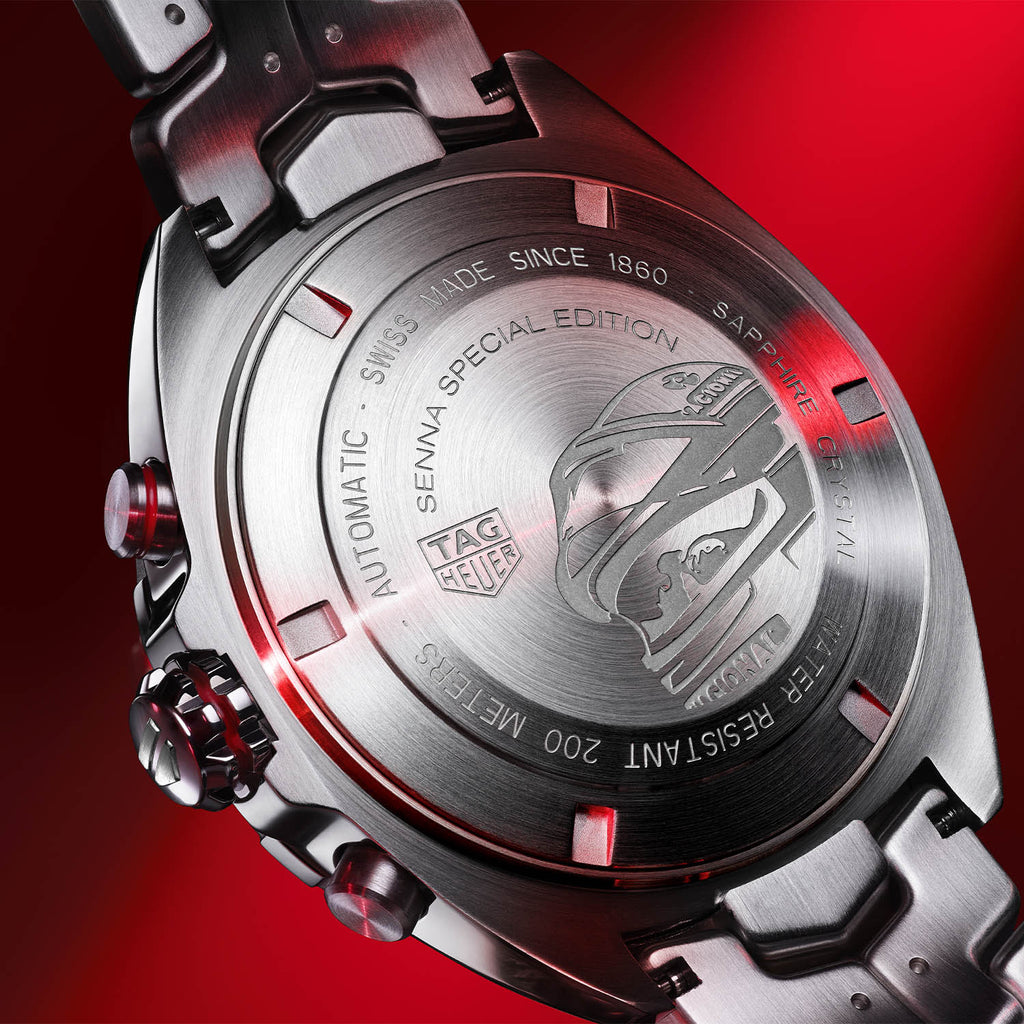 Inspired by the dominant style of race legend Ayrton Senna, this 44mm automatic chronograph is a Special Edition with Senna's original red watch colour as it continues to pay homage to the master of speed. The powerful automatic movement Calibre 16 equipped this new version with an even stronger design. A vibrant tribute to Ayrton Senna, an admired and adored legend for motor racing.