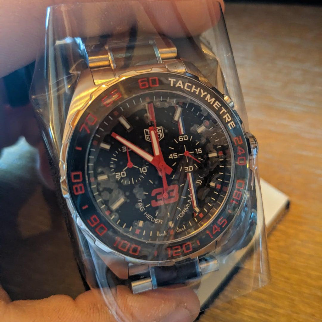Created in cooperation with Formula 1 driver Max Verstappen, this limited edition Formula 1 timepiece bears the colours of the Dutch flag and is marked with the number 33.