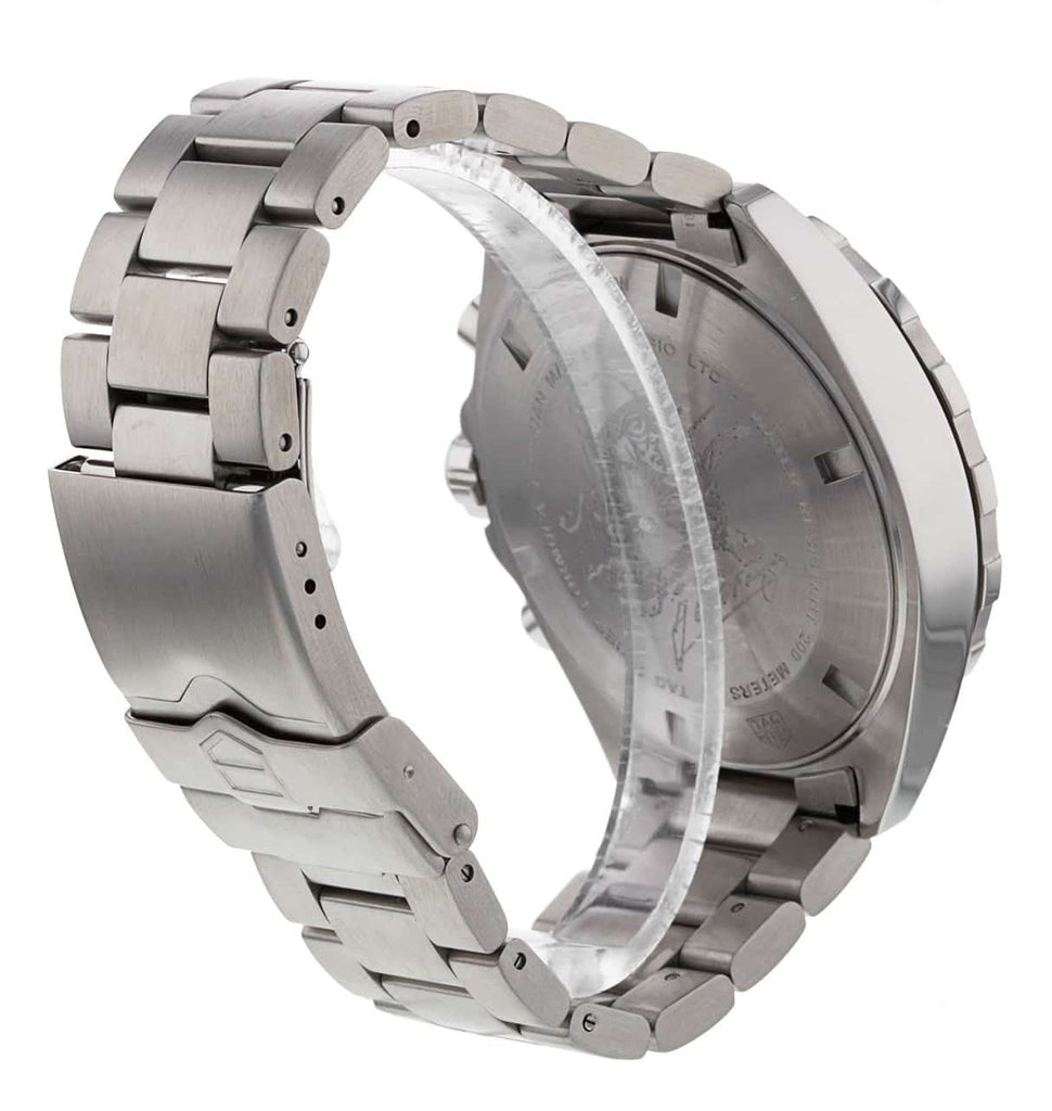 TAG Heuer as a brand has always relied on their product’s excellent chronographs. In addition, TAG produces dress watches of distinction suitable for any occasion and any ensemble. This TAG Heuer Mens Chronograph Quartz Watch has a 200 m / 20 atm water resistance, so you will be ready for swimming activities as well. This Tag Heuer Quartz watch’s features include a scratch-resistant sapphire crystal, a screw-down and protected winding crown, and a tightly closed aesthetic 43 mm case back for maximum durability. The fixed stainless steel bezel with a blue aluminum top ring sports a convenient tachymeter scale.