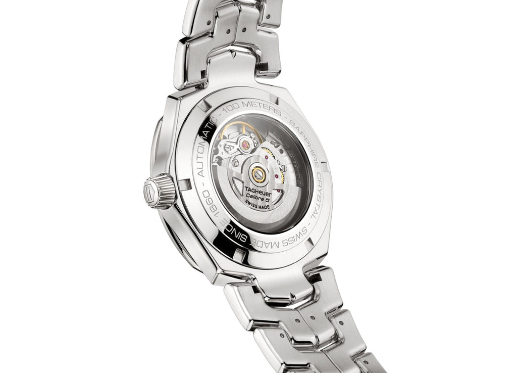 Movement, purity, curved lines, precision - these are characteristic features of the TAG Heuer LINK models. This LINK men's watch combines a sporty, elegant style with precise timekeeping. Its centerpiece is the blue dial with luminous silver-tone indexes, but the real star is the premium, luxury version of the iconic Double-S bracelet. Inside is the precise Caliber 5 automatic movement, which impresses with a date display and a power reserve of 38 hours. The robust stainless steel case, the scratch-resistant sapphire glass and a case back made of sapphire glass guarantee water resistance up to 100 meters. The TAG Heuer LINK - sophisticated design and the best materials combined in one watch!