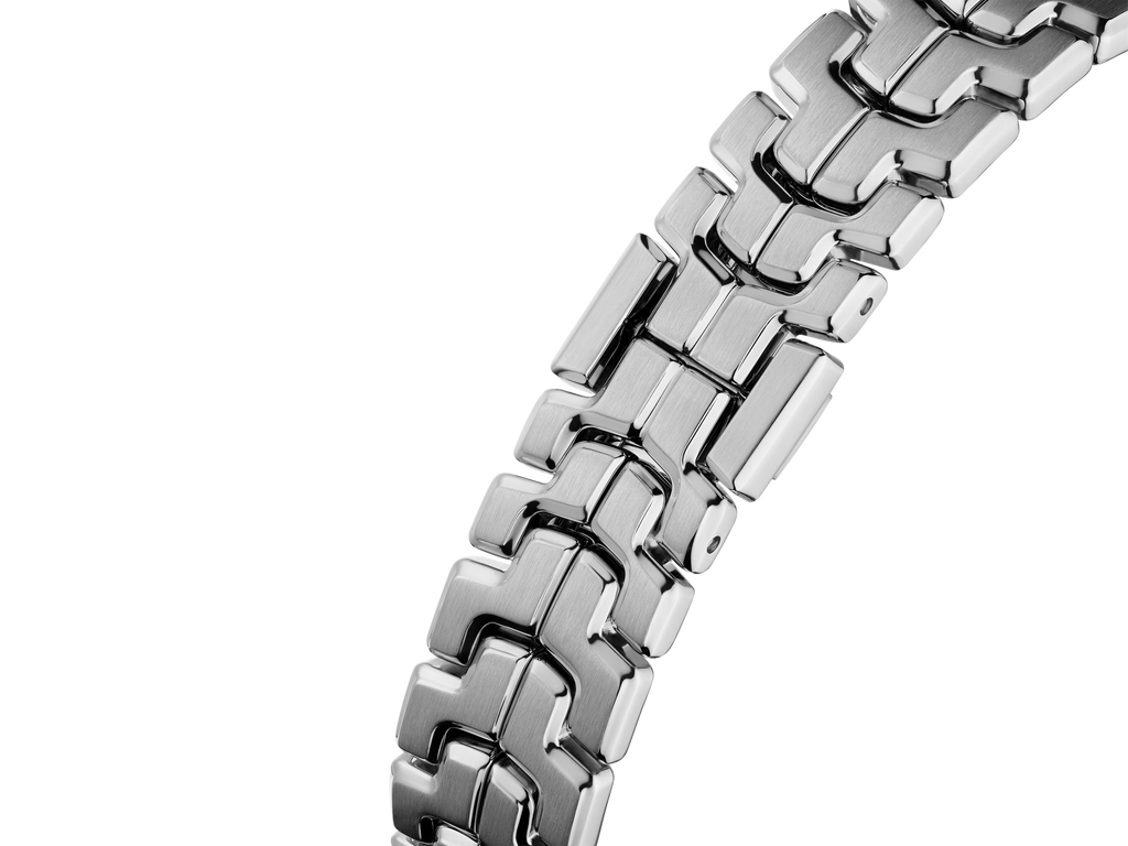 The iconic Link Lady Quartz with a natural white mother-of-pearl dial. The slender, 32mm case is stainless steel hand polished and fine-brushed to perfection.