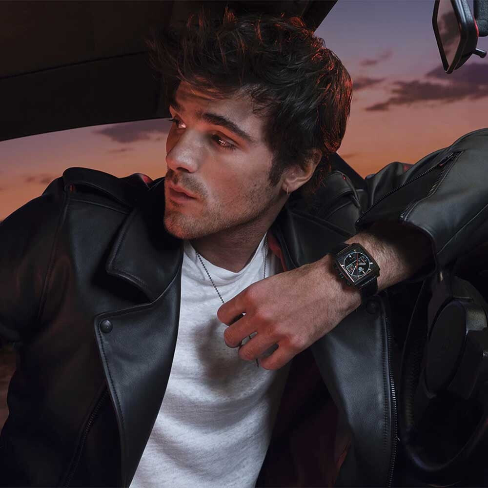 A timeless emblem of rebellious style, the Monaco collection is characterised by a unique, square case represents a move away from traditional watch design.
