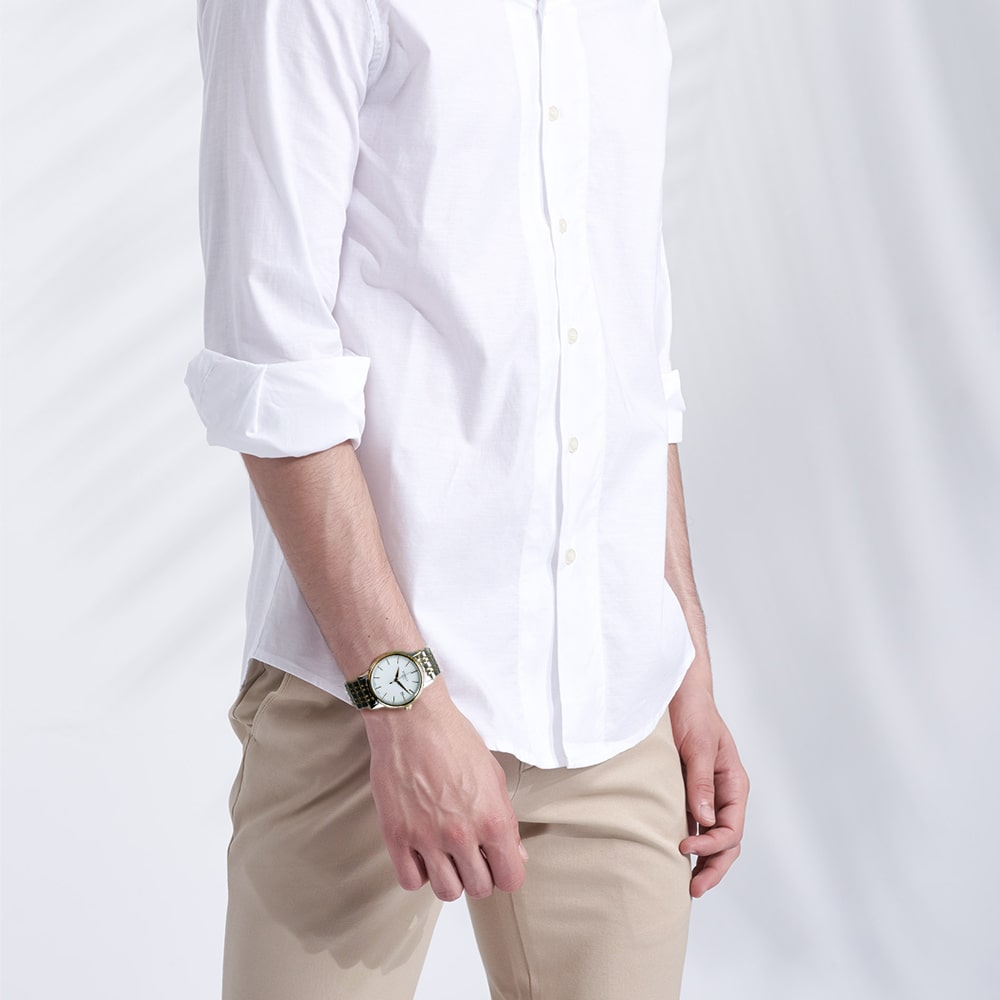 The Tissot Carson T085.410.22.011.00 is the perfect gift for an elegant man. The white dial is set in a steel envelope, which is paired with a tasteful bracelet. The stainless steel has been PVD-coated in a silver-gold tone. The water resistance of the product is 30 meters, so a small splash (for example, when washing hands) does not pose a risk of flooding the mechanism. The model includes a date of the days of the month, sapphire crystal glass and a Swiss quartz ETA 805.112 movement.